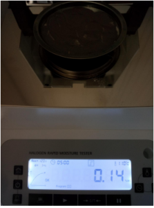 第三次,同樣克重方法定時測試5分鐘后檢測結(jié)束,檢測數(shù)據(jù)顯示0.14%;